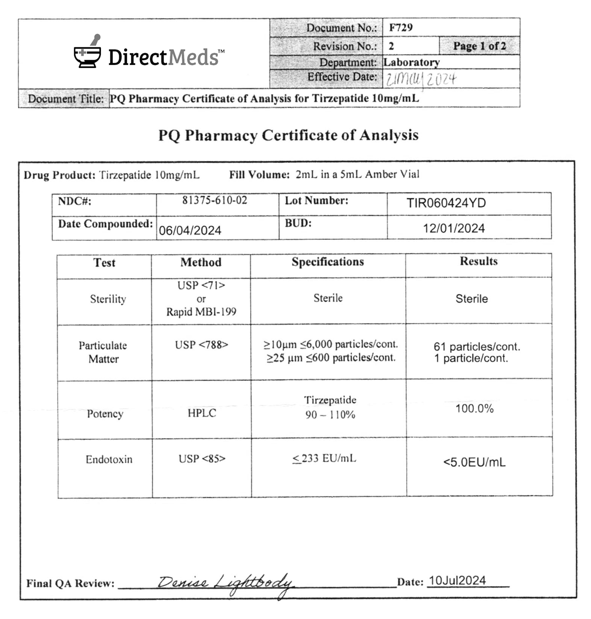 Direct Meds Tirzepatide Purity Analysis